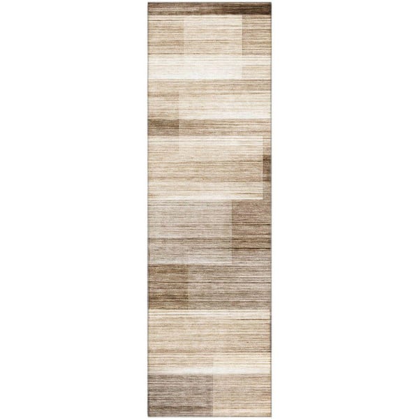 Mayfield Premium Machine Washable Abstract AMF2082 Brown 2 ft. x 7 ft. Runner Rug