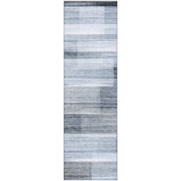 Mayfield Premium Machine Washable Abstract AMF2082 Denim 2 ft. x 7 ft. Runner Rug