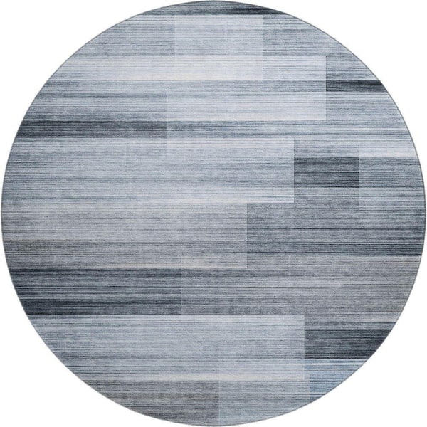 Mayfield Premium Machine Washable Abstract AMF2082 Denim 8 ft. x 8 ft. Round Rug