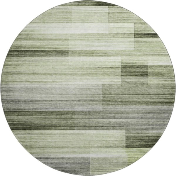 Mayfield Premium Machine Washable Abstract AMF2082 Green 8 ft. x 8 ft. Round Rug