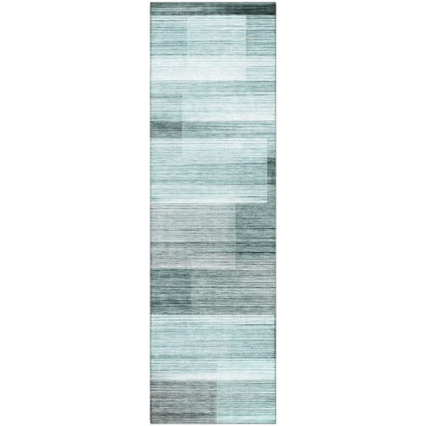 Mayfield Premium Machine Washable Abstract AMF2082 Teal 2 ft. x 7 ft. Runner Rug