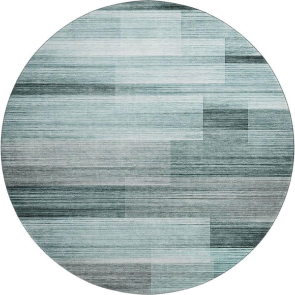 Mayfield Premium Machine Washable Abstract AMF2082 Teal 8 ft. x 8 ft. Round Rug