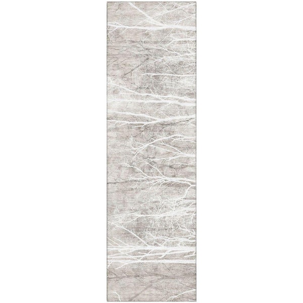 Mayfield Premium Machine Washable Abstract AMF2083 Silver 2 ft. x 7 ft. Runner Rug