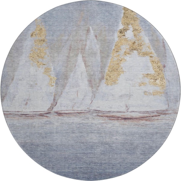 Mayfield Premium Machine Washable Abstract AMF2084 Blue 8 ft. x 8 ft. Round Rug