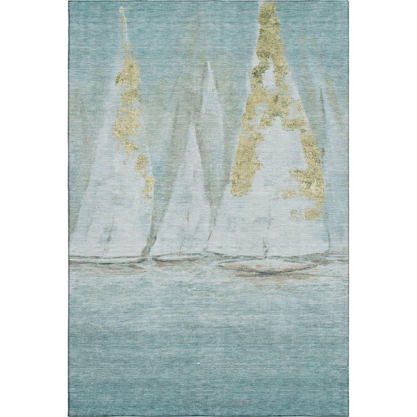 Mayfield Premium Machine Washable Abstract AMF2084 Teal 9 ft. x 12 ft. Area Rug