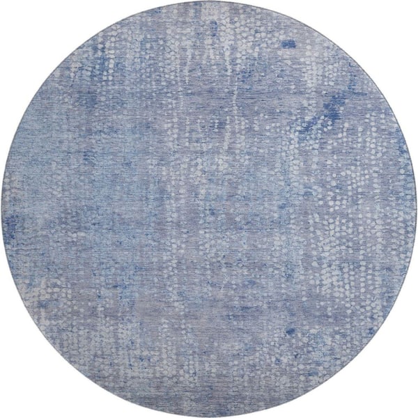 Mayfield Premium Machine Washable Abstract AMF2087 Blue 8 ft. x 8 ft. Round Rug