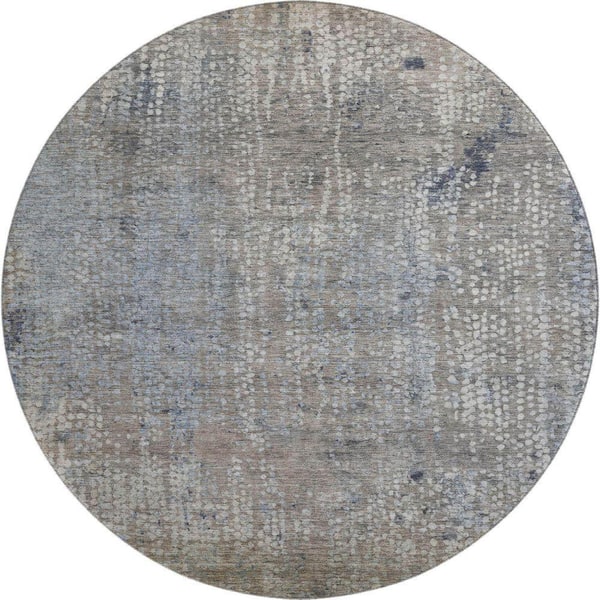 Mayfield Premium Machine Washable Abstract AMF2087 Taupe 8 ft. x 8 ft. Round Rug