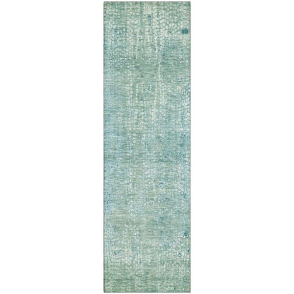 Mayfield Premium Machine Washable Abstract AMF2087 Teal 2 ft. x 7 ft. Runner Rug