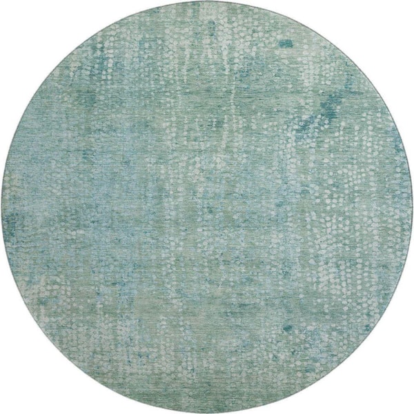 Mayfield Premium Machine Washable Abstract AMF2087 Teal 8 ft. x 8 ft. Round Rug