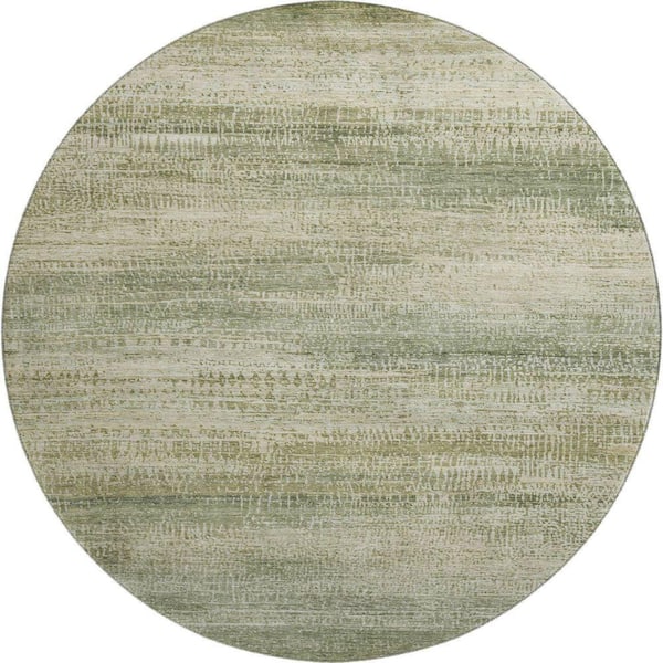 Mayfield Premium Machine Washable Abstract AMF2089 Aloe 8 ft. x 8 ft. Round Rug