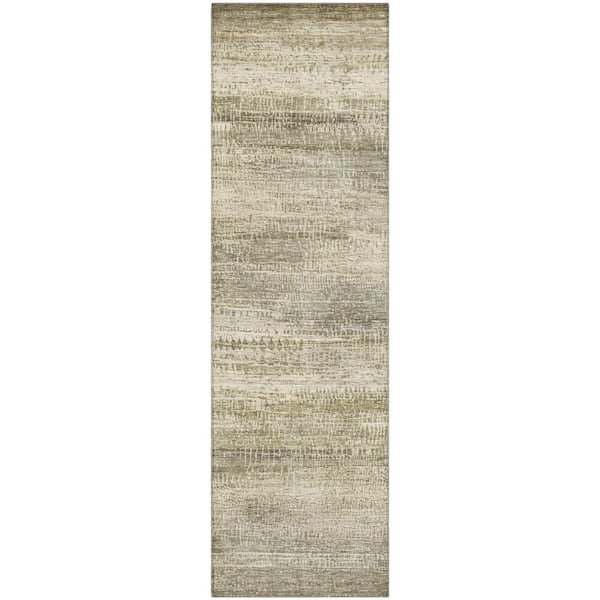 Mayfield Premium Machine Washable Abstract AMF2089 Taupe 2 ft. x 7 ft. Runner Rug