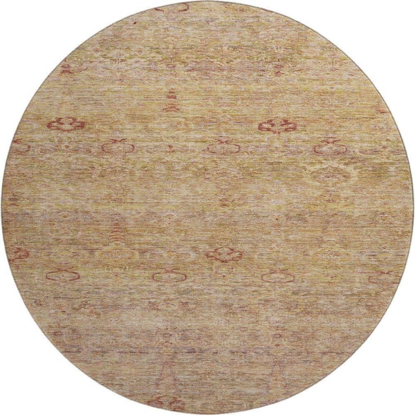 Mayfield Premium Machine Washable Abstract AMF2090 Coral 8 ft. x 8 ft. Round Rug