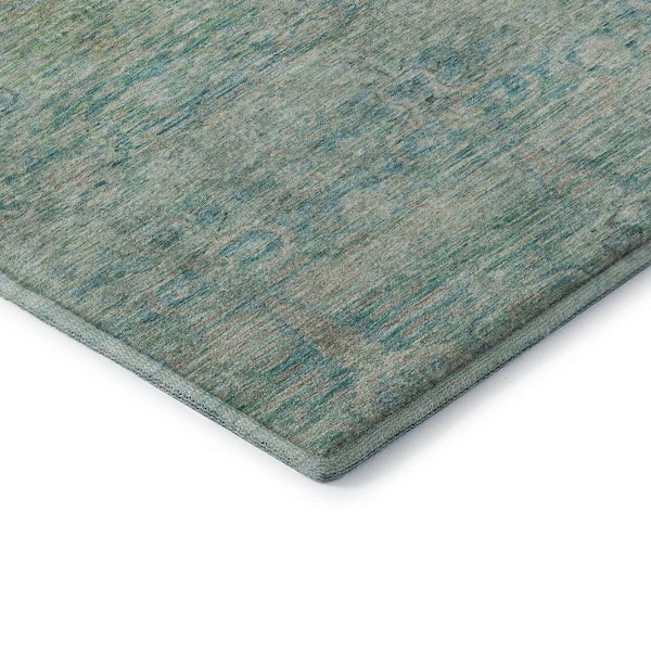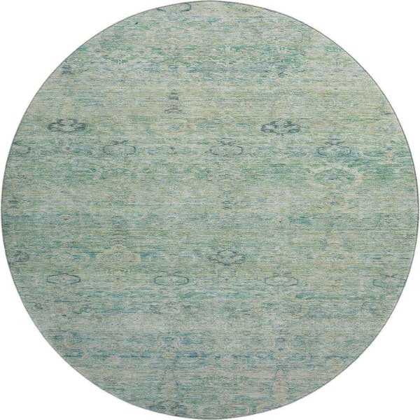 Mayfield Premium Machine Washable Abstract AMF2090 Teal 8 ft. x 8 ft. Round Rug