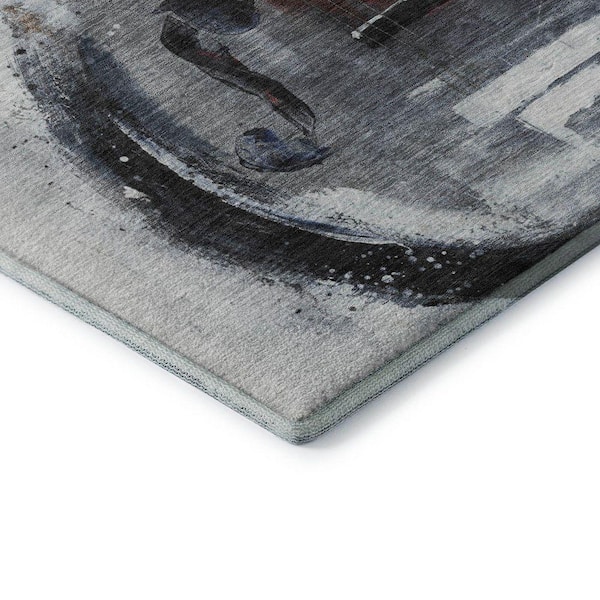Mayfield Premium Machine Washable Abstract AMF2091 Gray 3 ft. x 5 ft. Area Rug