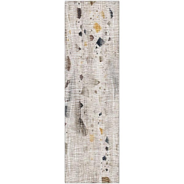 Mayfield Premium Machine Washable Abstract AMF2092 Linen 2 ft. x 7 ft. Runner Rug