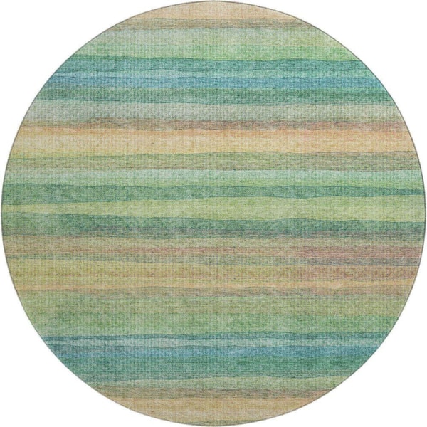Mayfield Premium Machine Washable Abstract AMF2093 Aloe 8 ft. x 8 ft. Round Rug