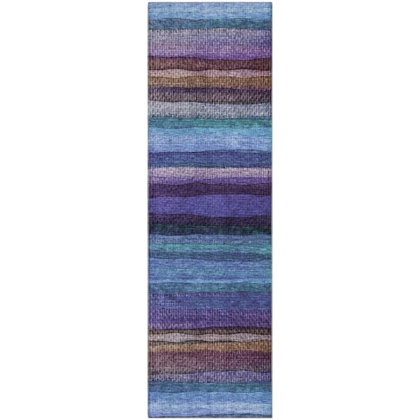 Mayfield Premium Machine Washable Abstract AMF2093 Blue 2 ft. x 7 ft. Runner Rug
