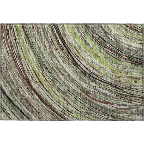 Mayfield Premium Machine Washable Abstract AMF2094 Aloe 2 ft. x 3 ft. Accent Rug