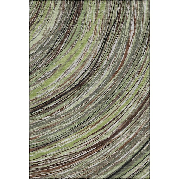 Mayfield Premium Machine Washable Abstract AMF2094 Aloe 8 ft. x 10 ft. Area Rug