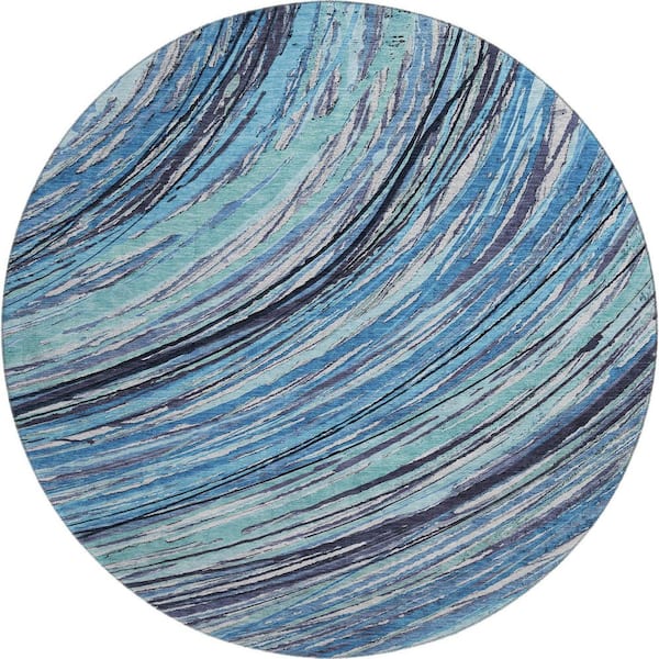Mayfield Premium Machine Washable Abstract AMF2094 Blue 8 ft. x 8 ft. Round Rug