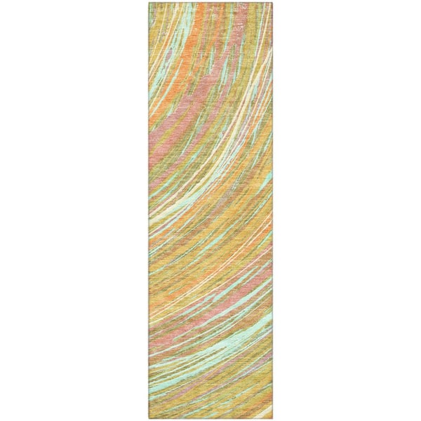 Mayfield Premium Machine Washable Abstract AMF2094 Gold 2 ft. x 7 ft. Runner Rug