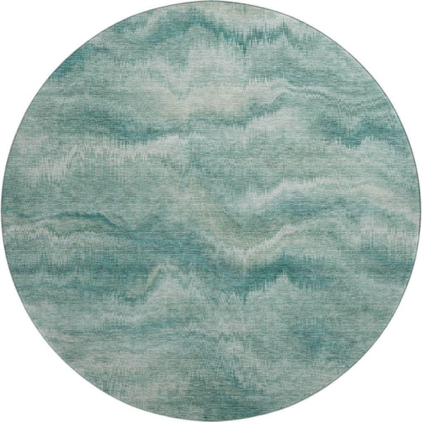 Mayfield Premium Machine Washable Abstract AMF2095 Teal 8 ft. x 8 ft. Round Rug