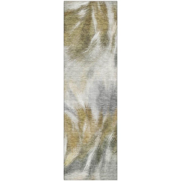 Mayfield Premium Machine Washable Abstract AMF2096 Pewter 2 ft. x 7 ft. Runner Rug