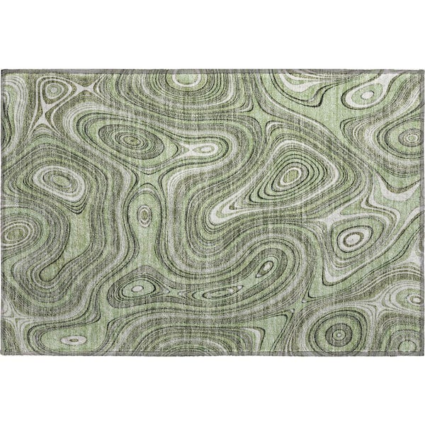 Mayfield Premium Machine Washable Abstract AMF2097 Aloe 2 ft. x 3 ft. Accent Rug