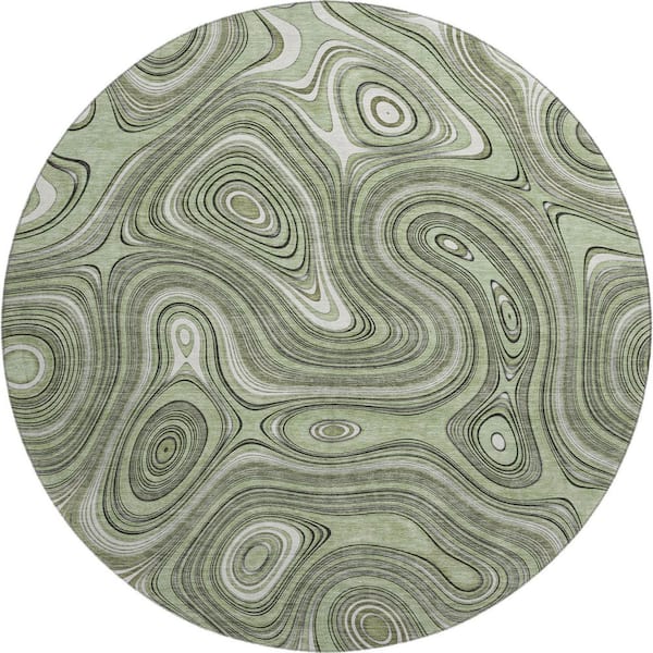 Mayfield Premium Machine Washable Abstract AMF2097 Aloe 8 ft. x 8 ft. Round Rug
