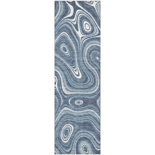 Mayfield Premium Machine Washable Abstract AMF2097 Blue 2 ft. x 7 ft. Runner Rug