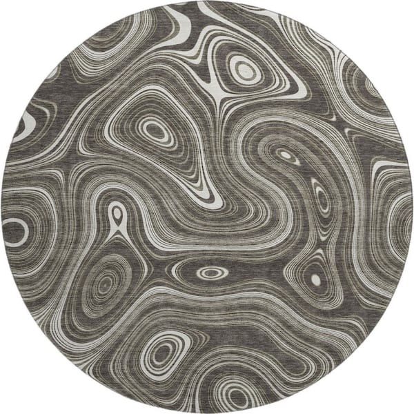 Mayfield Premium Machine Washable Abstract AMF2097 Gray 8 ft. x 8 ft. Round Rug