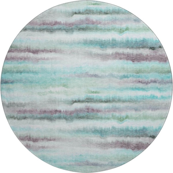 Mayfield Premium Machine Washable Abstract AMF2098 Teal 8 ft. x 8 ft. Round Rug