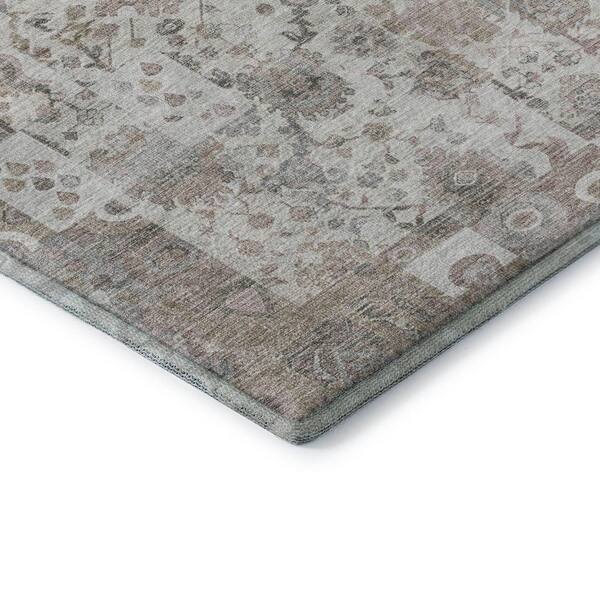 Mayfield Premium Machine Washable Abstract AMF2099 Taupe 8 ft. x 8 ft. Round Rug