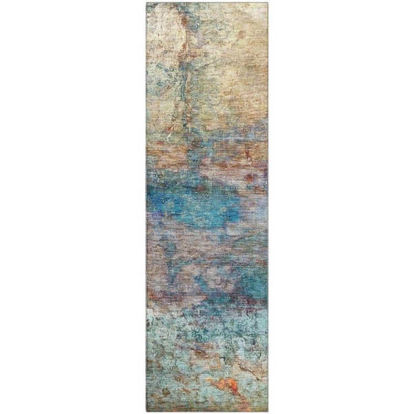 Mayfield Premium Machine Washable Abstract AMF2100 Teal 2 ft. x 7 ft. Runner Rug