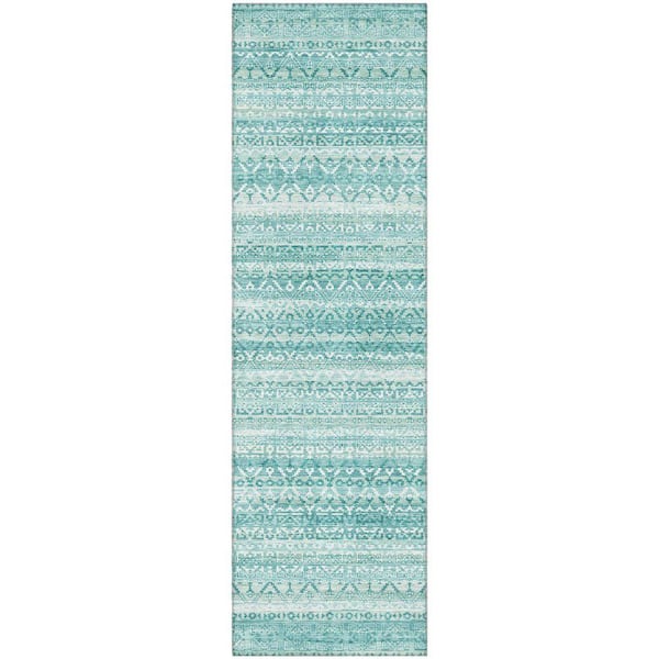 Mayfield Premium Machine Washable Abstract AMF2101 Aqua 2 ft. x 7 ft. Runner Rug