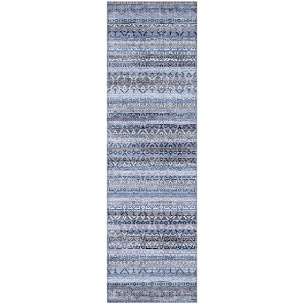 Mayfield Premium Machine Washable Abstract AMF2101 Blue 2 ft. x 7 ft. Runner Rug