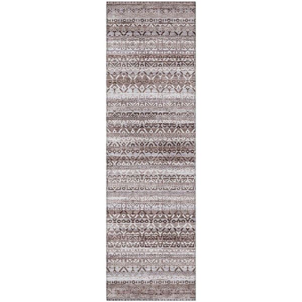 Mayfield Premium Machine Washable Abstract AMF2101 Brown 2 ft. x 7 ft. Runner Rug