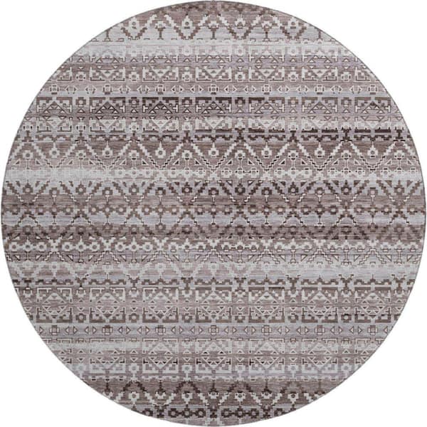 Mayfield Premium Machine Washable Abstract AMF2101 Brown 8 ft. x 8 ft. Round Rug