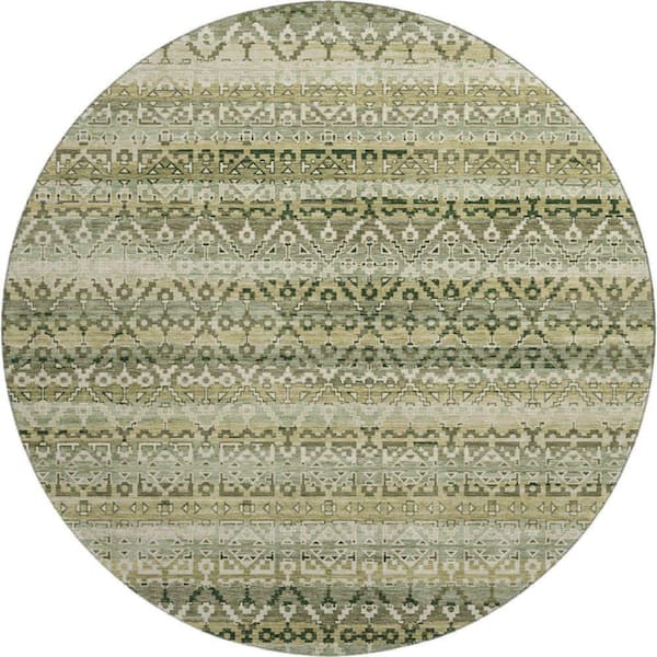 Mayfield Premium Machine Washable Abstract AMF2101 Green 8 ft. x 8 ft. Round Rug
