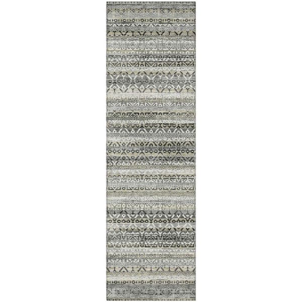 Mayfield Premium Machine Washable Abstract AMF2101 Pewter 2 ft. x 7 ft. Runner Rug