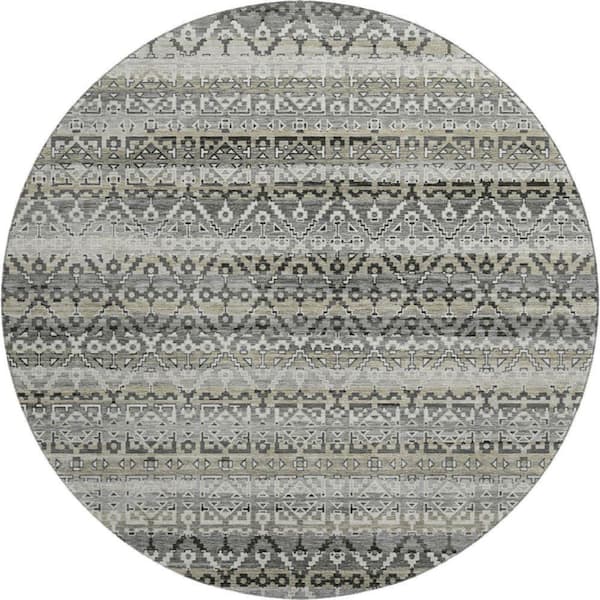 Mayfield Premium Machine Washable Abstract AMF2101 Pewter 8 ft. x 8 ft. Round Rug
