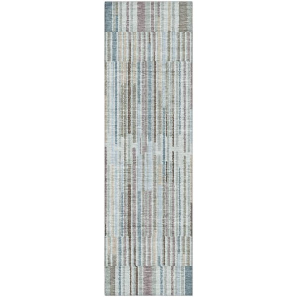 Mayfield Premium Machine Washable Abstract AMF2102 Teal 2 ft. x 7 ft. Runner Rug