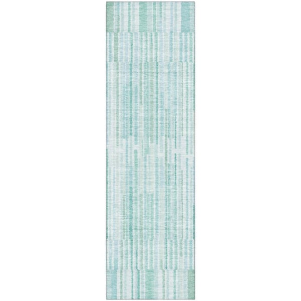 Mayfield Premium Machine Washable Abstract AMF2102 Turquoise 2 ft. x 7 ft. Runner Rug