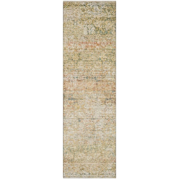 Mayfield Premium Machine Washable Abstract AMF2103 Gold 2 ft. x 7 ft. Runner Rug