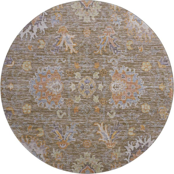 Mayfield Premium Machine Washable Abstract AMF2104 Brown 8 ft. x 8 ft. Round Rug