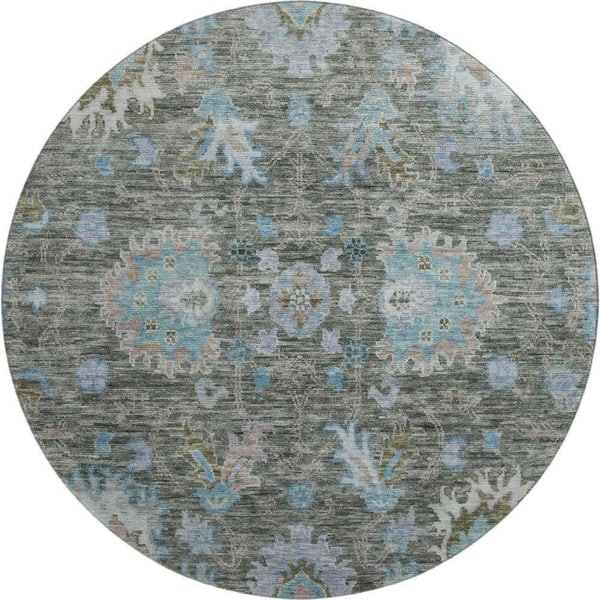 Mayfield Premium Machine Washable Abstract AMF2104 Fern 8 ft. x 8 ft. Round Rug