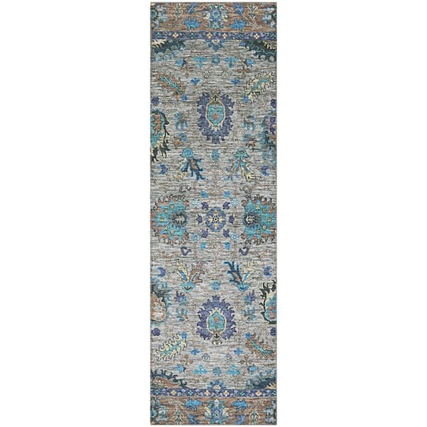Mayfield Premium Machine Washable Abstract AMF2104 Pewter 2 ft. x 7 ft. Runner Rug