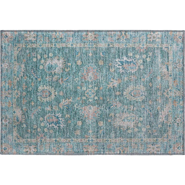 Mayfield Premium Machine Washable Abstract AMF2104 Teal 2 ft. x 3 ft. Accent Rug