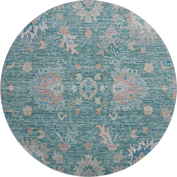 Mayfield Premium Machine Washable Abstract AMF2104 Teal 8 ft. x 8 ft. Round Rug