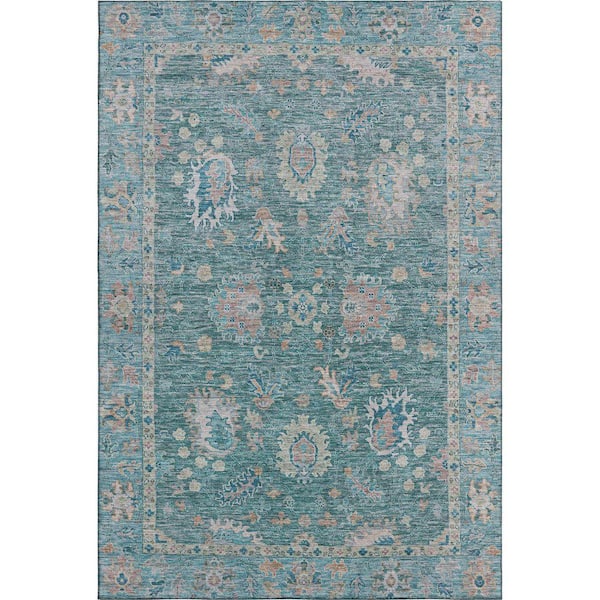 Mayfield Premium Machine Washable Abstract AMF2104 Teal 9 ft. x 12 ft. Area Rug